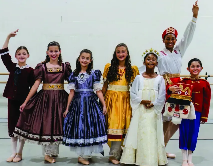 St. Andrew’s students who will be featured dancers in Ballet Mississippi’s production of The Nutcracker, running December 4–6, include (from left) Kit Patrick, Catherine James, Kristiana Murphy, Cilia Penton, Zari Primer, Morgan Lee, and Leilani Zhou.