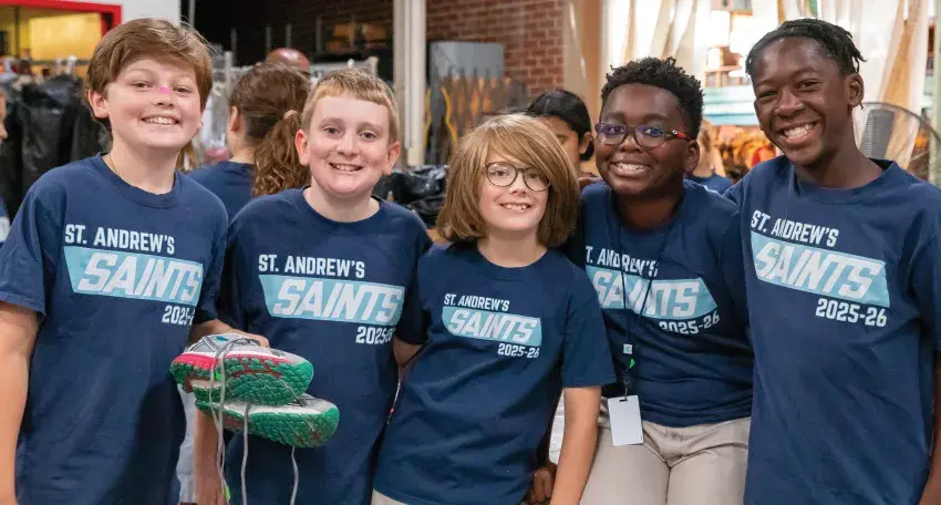 All fifth grade students at St. Andrew's participated in Service Learning Day helping out at various locations across Jackson. Students (from left) Evan Burns, Connor Hoppe, Wislon Sanders, Elijah Gee, and Lava Hood volunteered at the Good Samaritan Center.