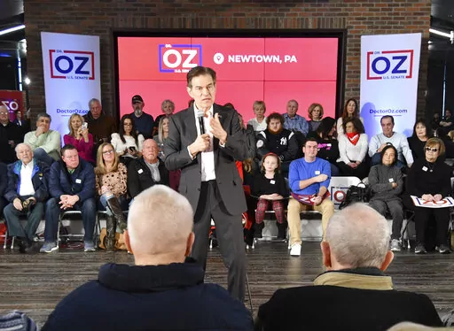NEWTOWN, Pa. (AP) — The banners and big red video screen all said Dr. Oz, the host gave a rousing introduction and in strode the candidate, Mehmet Oz, to take up the microphone and become the center of attention for more than an hour.