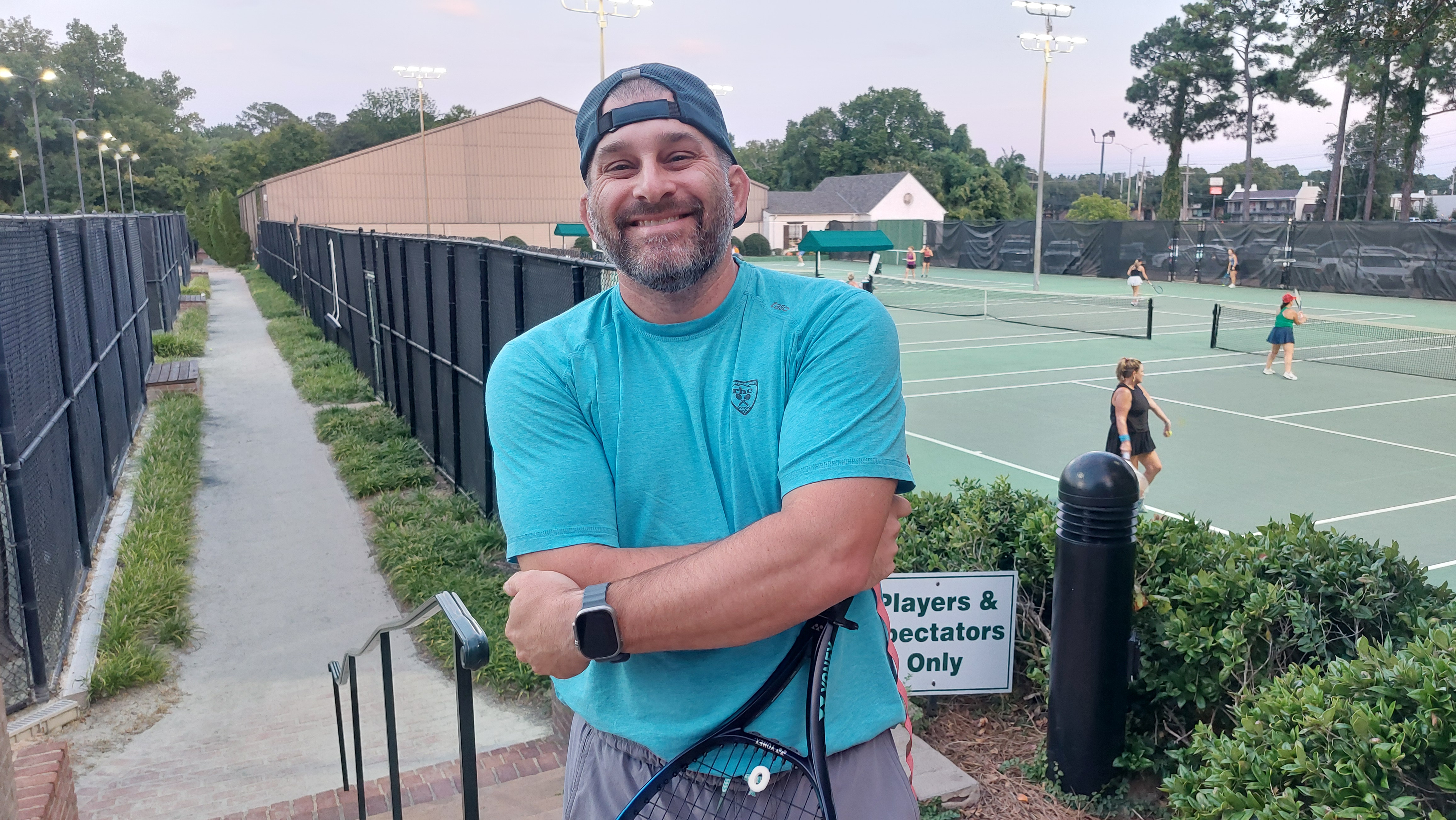 After the play is over, the men of the Northside kRiver Hills Men's Tennis Association (RHMTA) hang out, eat complimentary food, enjoy various libations, complain about the performance of their partners, wax eloquent about the joys of family life and solve the problems of the world.