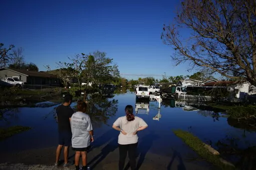Ortiz said the food pantry's green building is the heart of the Harlem Heights neighborhood, a small, mostly Hispanic community of nearly 2,000 people near Fort Myers that was hammered by the Category 4 hurricane. A sign scrawled on a piece of roofing that had torn loose advertised free food, diapers, wipes, body wash and toothpaste.