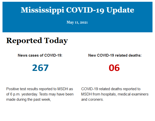 Listed below is the daily COVID-19 update for the state of Mississippi.