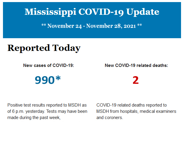 Listed below is the daily COVID-19 update for the state of Mississippi.