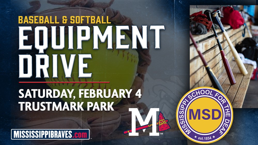 The Mississippi Braves have partnered with the Mississippi School for the Deaf (MSD) to host a softball and baseball equipment drive on Saturday, February 4, from 10 am to 2 pm at Trustmark Park.