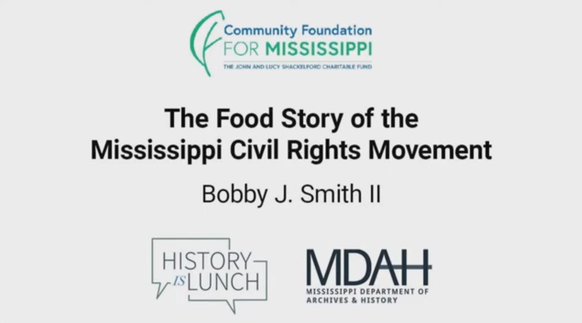 History Is Lunch is a weekly lecture series of the Mississippi Department of Archives and History that explores all aspects of the state’s past. The hour-long programs are held in the Craig H. Neilsen Auditorium of the Museum of Mississippi History and Mississippi Civil Rights Museum building at 222 North Street in Jackson and livestreamed on YouTube and Facebook.