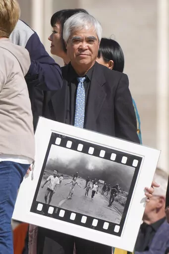 VATICAN CITY (AP) — Retired Associated Press photographer Nick Ut met Wednesday with Pope Francis and gave him a copy of his Pulitzer Prize-winning photograph of a young Vietnamese girl running naked down the road after a napalm attack.
