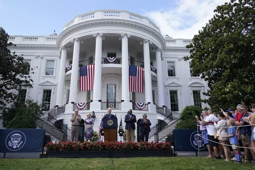 President Joe Biden hosted a barbecue for military families at the White House, which was decked out with red, white and blue bunting and big U.S. flags draped over the columns facing the South Lawn. Biden told the crowd gathered how grateful he was for their service. And he talked about how important it was to work to unify the nation.