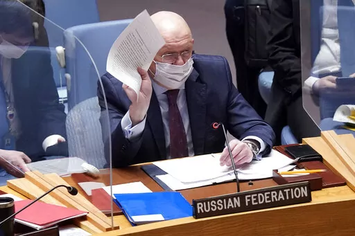 UNITED NATIONS (AP) — Russia accused the West on Monday of “whipping up tensions” over Ukraine and said the U.S. had brought “pure Nazis” to power in Kyiv as the U.N. Security Council held a stormy and bellicose debate on Moscow's troop buildup near its southern neighbor.