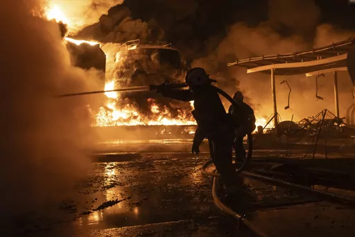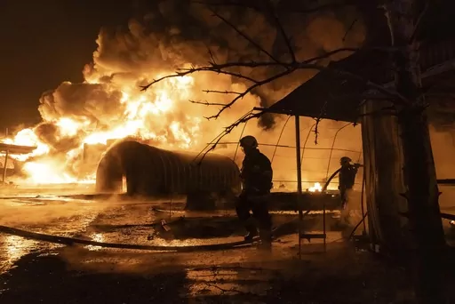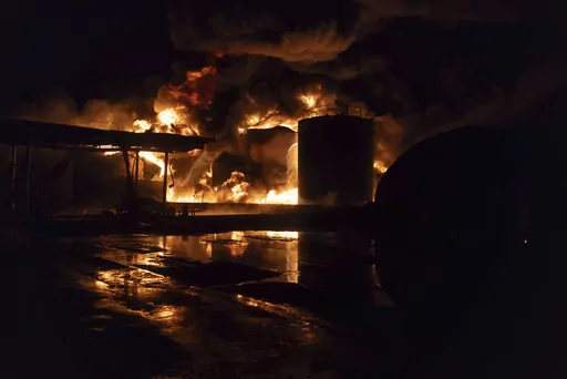 Syniehubov said that an oil depot was hit, causing the fuel to leak out, which prompted the fire. In a Facebook post, Serhii Bolvinov, head of the investigative department of the National Police, cited a local resident as seeing “a true hell: first the fuel flowed, then everything caught fire.”