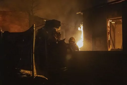 He said at least 10 drones were launched at Kharkiv, eight of which were shot down. Civilian infrastructure in the Nemyshlyan district of the city was hit, causing a massive fire that burned down 15 private houses, he said.