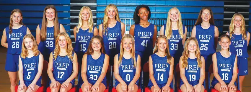 Members of Jackson Prep’s seventh grade girls basketball team for the 2025-2026 season include (from left, back) Mary Harr Payne, Annabelle Hendrix, Zella Fulton, Rivers Newman, Dailah Collins, Everly Smith, Mae McNamara, Harlen Craig; and (front) Lucy Suggs, Laura Vaiden Clark, Norah Leggett, Kate Prescott Orr, Ava Lenoir Lamar, Kate Houston, a