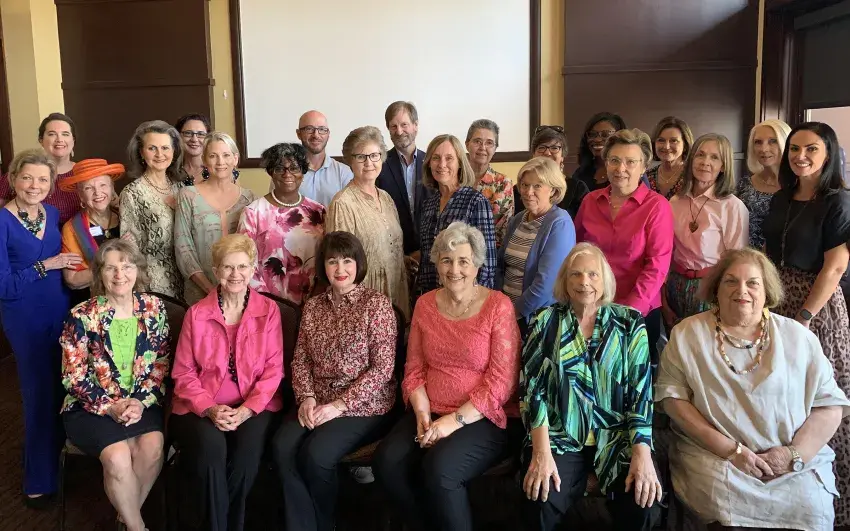 Metro Jackson alumni of Mississippi University for Women (MUW) gathered recently to learn more about the Eudora Welty Symposium held annually on campus. Alumni and guests included (from left, back) Barbara Travis, Katy Pacelli, Maureen Tadlock Watt, Judy Rankin, MUW Dean of Library Services Amanda Clay Powers, Ruth McMillin, Debra Sturgis-Stamps, Todd Lape of University Press, Sue Simmons Freeman, MUW Professor Dr. Kendall Dunkelberg, Jane Turner, Anne Webster, Elizabeth Ramsey, Becky Cade, Symone Bounds, Virginia Hughson, Ginger Darnell, Nancy Stevens, Glenna Morgan, Kristi Hipp Mosley; (front) Peggy Hampton, Mary Libby Payne, Margaret Niven, Jacquelyn Thornell, Helen Sanders and Betty Lou Jones.