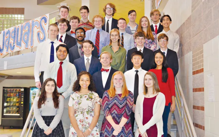 Madison Central High School broke its own record for the 2016-2017 school year with a total of 80 AP Scholars. AP Scholars were awarded for scoring a three or higher on three AP exams. AP Scholars with Honor were awarded for scoring at least a 3.25 on all AP exams taken and scores of three or higher on four or more exams. AP Scholars with Distinction were awarded for having an average score of at least 3.5 on all AP exams taken and scores of three or higher on five or more exams. Emily Zhang, a 2017 graduate, was awarded State AP Scholar, which goes to one male and one female in each state with scores of three or higher on the greatest number of AP exams and the highest average score of at least 3.5 on all AP exams taken. Zhang took a total of 14 exams. National AP Scholars were awarded for having an average of at least four on all AP exams taken and scores of four or higher on eight or more exams. The following 2017 graduates were the National AP Scholars for Madison Central: Reyna Dixit, Kurk Harris, Jesse Li, Harrison McKinnis and Emily Zhang. Shown are current students (from left, back) AP Scholars with Honor Luke Little, John Bethea, Logan Scott and John Walker Webb, AP Scholar with Distinction Noah Grovich; (fourth row) AP Scholar with Distinction Jake Dellinger, AP Scholars with Honor Trey McMullan and Will Humphreys, AP Scholar Stroud Tolleson, AP Scholar with Honor Maddie Gall and AP Scholar with Distinction Alex Nguyen. Back row left to right are AP Scholars not pictured are Martha Brinson, Anna Brock, Alida Leroux, Bailey Magee, John Martin Paczak, Erin Patton, Advait Praveen and Aditya Surakanti; (third row) P Scholars Eli Howland, Chanu Cherukuri and Abigail Barton, AP Scholar with Honor John Michels, AP Scholar with Distinction James Michels; (second row) AP Scholars with Distinction Parth Malaviya and David McDonald, AP Scholar with Honor Daniel Ramsey, AP Scholar Michael Zhang, AP Scholar with Distinction Rimika Banerjee.; (front) AP Scholars Anna Bonvillain, Zoe Bush, Hannah Weaver and Kaylee Ricchetti. Not pictured: AP Scholars with Honor Alexa Aubrey and Case Draughn, AP Scholars with Distinction Mary Ranie Miller, Maeve Rigney and Claire Smith.