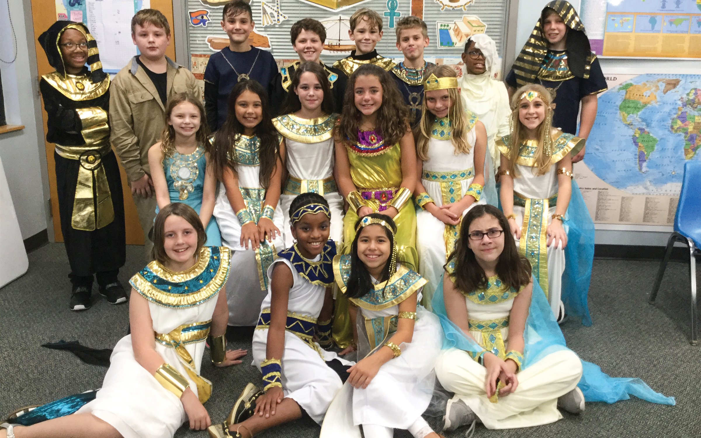 St. Andrew’s Episcopal School fifth-graders recently celebrated Egypt Day, an annual celebration of their study of ancient Egypt. Dressed in their finest Egyptian attire are (from left, back) Josiah McKinney, Sawyer Bond, Cade Finseth, Mason McCain, William McCaffery, Luke Peterson, Konnor Howard, Jude Misenar; (middle row) Madalynn Johnson, Gaby deDelva, Avery Shiflett, Emily Alexander, Ava Croft, Lydia Murphy; (front) Anna Robertson, Alleah Paulding, Isabelle Zevallos and Sarah Champney.