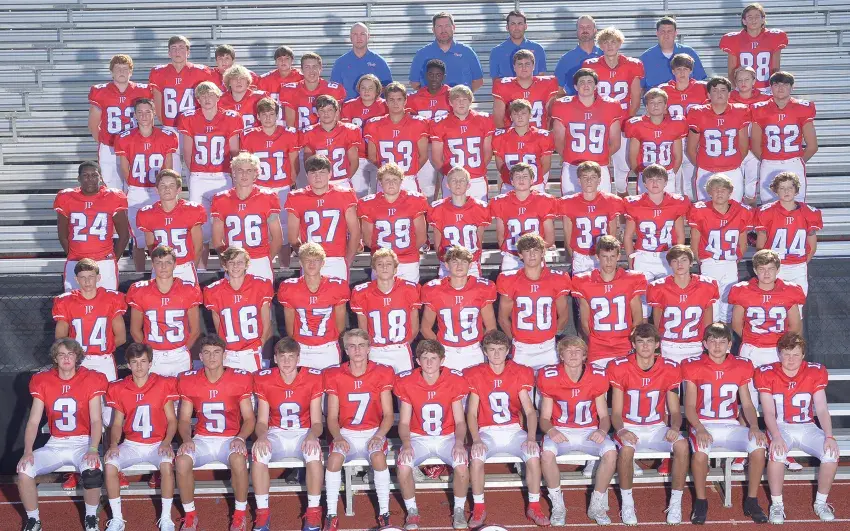 Members of the Jackson Prep junior high football team include (from left, back) Harrison Fulcher, John Woods Hollowell, Coach Butch Case, Coach Brent Heavener, Head Coach Zander Romano, Coach Marcus Canoy, Coach Les Triplett, Owen McCraney; (second row) Charles Phillips, Will Skipper, Ash Hederman, Peter Downing, Henry Dawkins, Micah Stallworth, Allen Rebich, Sam Stogner, Beckham Powers, Walter George; (third row) Nolan Canoy, Andrew Puckett, Andy Brown, Blair Hurst, Ryan Fisackerly, Clayton Grubbs, Thomas Gough, Wilson Cotten, Banks Hewitt, Christopher McHenry, Maddox Noe; (fourth row) Robert Thomas, Thomas Cross, Lake Womack, Matthew Cochran, Christopher Maddux, Will Herron, Will Dungey; (fifth row) Bennett Herring, Paxton Thompson, Charlie Barbour, Luke Segrest, Matthew Laseter, Luke Harrigill, Winn Crosby, Grey Thompson, Gager Liston, Luke Gross; (front) Harrison Jones, Will Upton, Rives Reynolds, William Laird, William Walker, Nathan Werne, Ford McDaniel, Sam Watts, Price Perkins, Peyton Puckett, Trey Welch.
