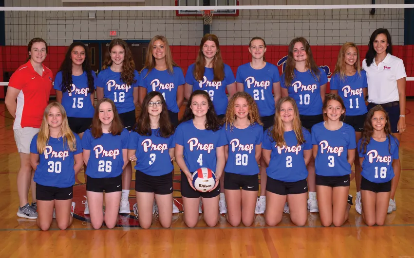 Playing volleyball for Jackson Prep this year are (from left, back) Coach Caitlyn Arender, Meredith McClain, Bailey Blount, Sarah Headley, Regan Sites, Lauren Hand, Haze Clayton, Josie Essary, Head Coach Shelby Grace Mays; (front) Carson Mallard, Amanda Galambus, Lydia Tidwell, Caroline Sharp, Katherine Speed, Betsy Walters, Ann Stuart Woodson, Mia Malone. Not pictured Anna Bush and Lucy Cook.