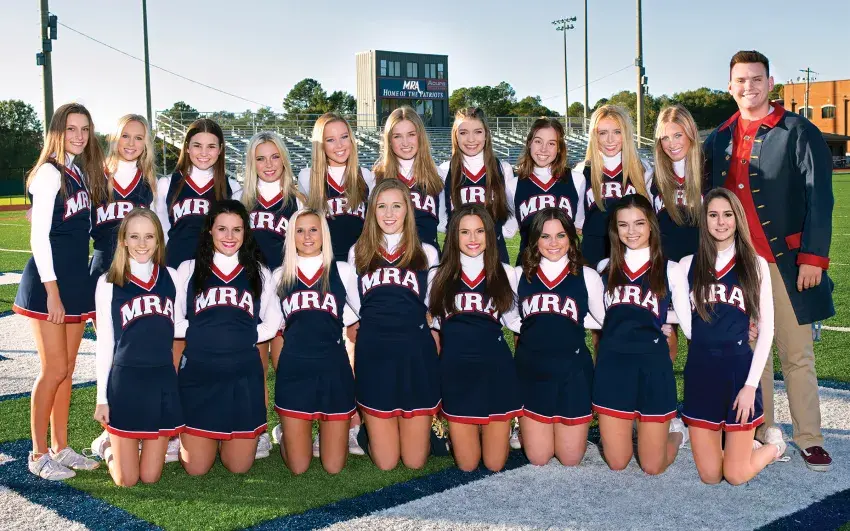 Madison Ridgeland Academy 2018-2019 varsity cheer squad includes members (from left, back) Laurel Fulcher, Sydney Zito, Emma Wilson, Campbell Owens, Caroline Venable, Madison McCrory, Cali Chance, Sara Carson Hailey, Mary Bratton Guest, Taylor Howard, Grant Watts; (front) Caroline Cameron, Kelli Shufelt, Shelby McCraw, Georgia Galatas, Libby Thomas, Claire Finch, Anne Rivers Streeter, Alexandra Cullom.