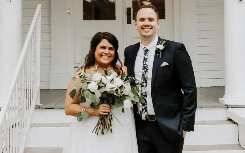 After a wedding trip to Tulum, Mexico, the couple is at home in Belhaven, where the bride is a graphic designer and the bridegroom is a real estate agent with The Neighborhouse.