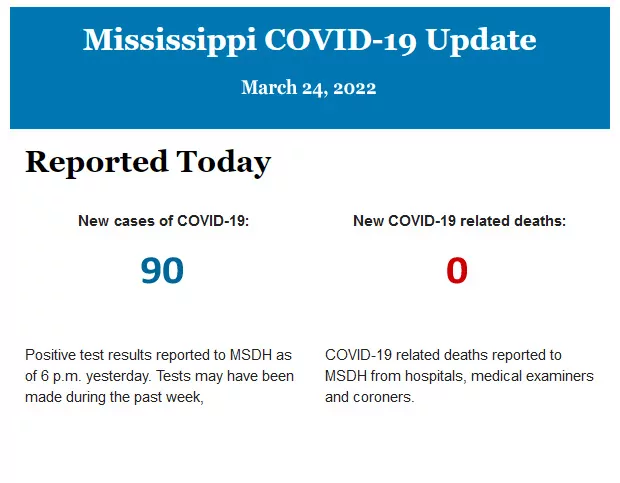 Listed below is the daily COVID-19 update for the state of Mississippi.