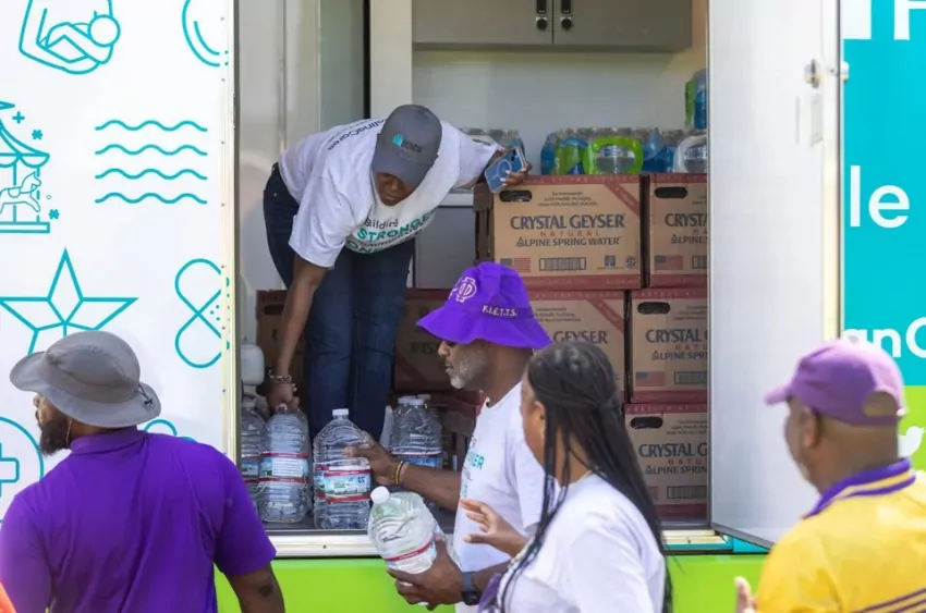 Salvation Army workers distribute bottled water at Walmart in Jackson, Miss., Wednesday, August 31, 2022. Credit: Eric Shelton/Mississippi Today