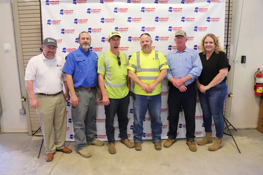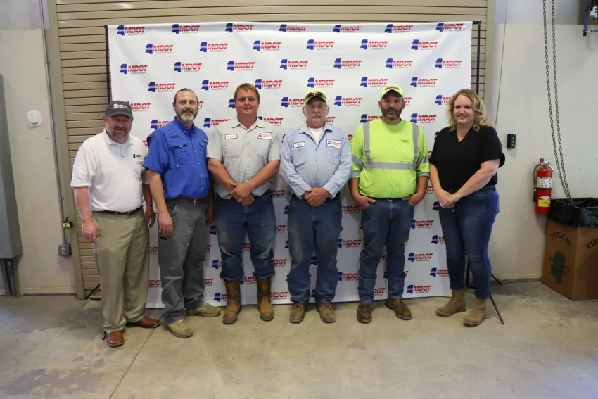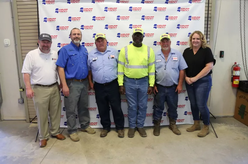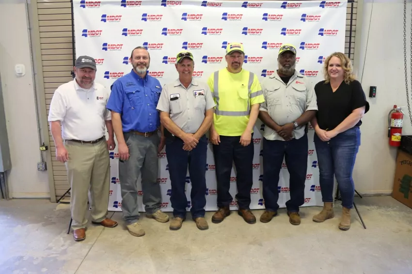 Also pictured in each photo is Brian Ratliff, MDOT Deputy Executive Director; Matt Dugas, District 7 Maintenance Engineer; Janie Bass, District 7 Assistant Maintenance Engineer.