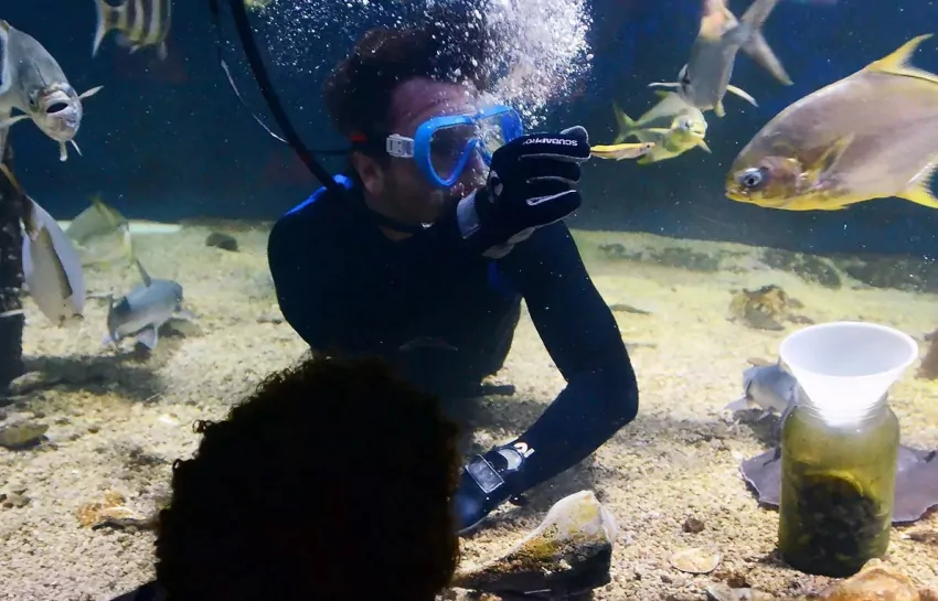 Currently, Kelly is an “enriched air nitrox diver” working toward his dive guide certification. He’s also one of the divers who hand feed a variety of aquatic life on display in aquariums at the Mississippi Museum of Natural Science in Jackson.