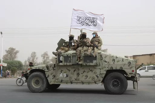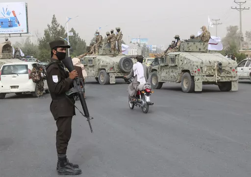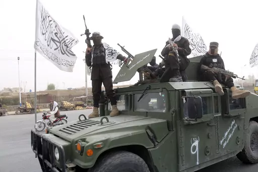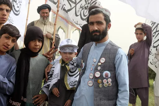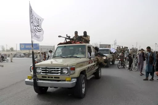 In the southern city of Kandahar, the spiritual birthplace of the Taliban, military personnel posed with armored vehicles. Young men rode through the city on bicycles, motorcycles and cars, waving flags and brandishing weapons. Toddlers clutched small white Taliban flags bearing a photo of Defense Minister Maulvi Mohammad Yaqoob on the bottom right corner.