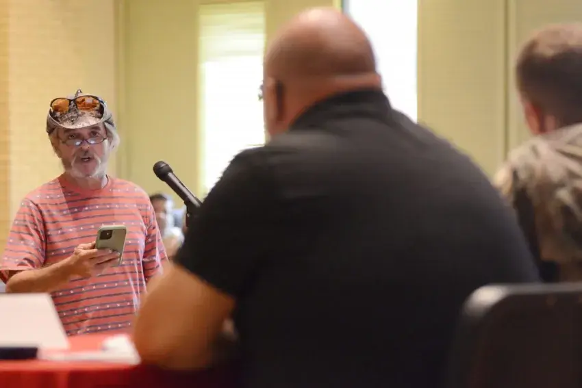 Water systems third-party administrator Ted Henifin, answers questions from concerned residents regarding the current state of the city's water system during a town hall meeting held at Forest Hill High School, Wednesday, Dec. 7, 2022. Credit: Vickie D. King/Mississippi Today