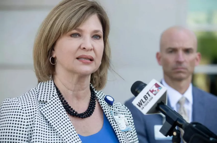 Kim Jackson, assistant director of the Innovative Learning Center, center, speaks to students, including Christian Hollis, top left, during the Mississippi Rural Physicians Scholarship Program Medical Encounter workshop at William Carey University in Hattiesburg, Miss., Monday, April 11, 2022. Credit: Eric Shelton/Mississippi Today