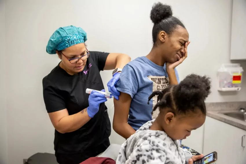 Mississippi Highway Patrol Trooper Sy Holley, center, and Latesha Wells, case manager with Hinds Behavioral's Mobile Crisis Response Team, right, participate in a psychiatric call simulation during a training session at the Mississippi Law Enforcement Officers Training Academy in Pearl, Miss., Friday, July 30, 2023. Credit: Eric Shelton/Mississippi Today
