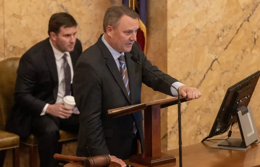 House Speaker Jason White speaks to representatives at the State Capitol in Jackson, Miss., Thursday, Jan. 18, 2024, during a special legislative session called by Gov. Tate Reeves to approve an economic development project in North Mississippi. Credit: Eric J. Shelton/Mississippi Today