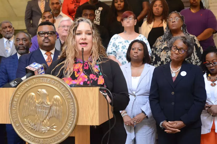Jack Reed, former Mayor of Tupelo, and other business leaders from across the state, urge the legislature to pass the Medicaid expansion bill, during a press conference at the state Capitol, Tuesday, April 23, 2024 Credit: Vickie D. King/Mississippi Today