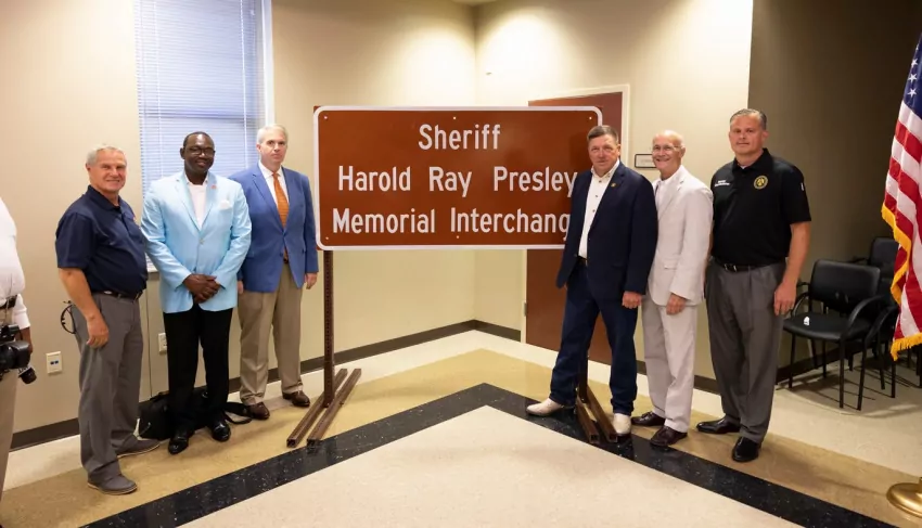 Officials gathered in Tupelo Wednesday, July 6, to dedicate an interchange designating the intersection of Interstate 22 and Auburn Road, Exit 90 in Lee County, as the Sheriff Harold Ray Presley Memorial Interchange.