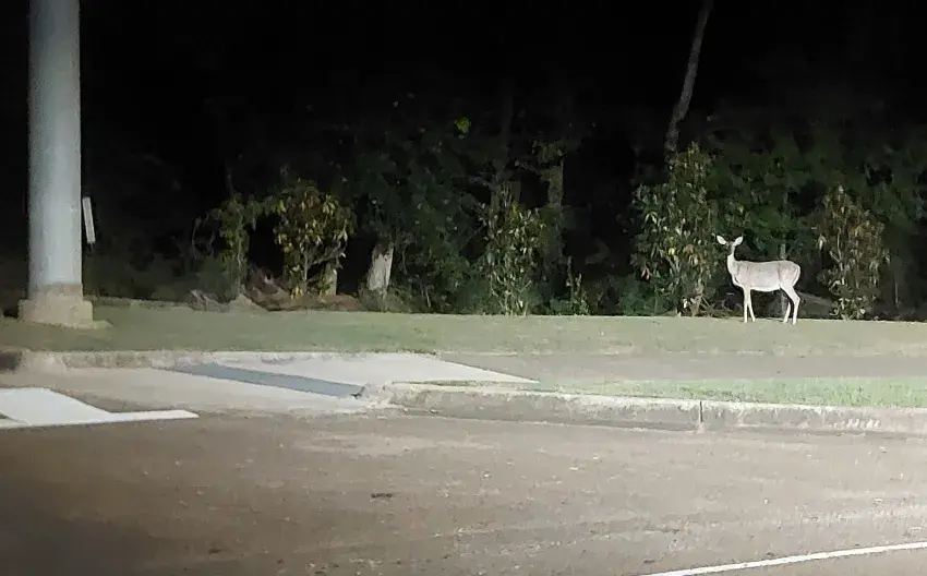 Publisher's Note: Driving along Eastover Drive just north of the R&D Center, I photographed this deer caught in the headlights. The Ed Center has a fair amount of foliage and deer have taken advantage of it. Deer are often seen along this road at night.