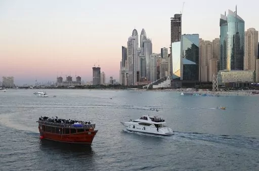 With a city skyline view, a DJ wearing a face mask performs music, during brunch, at a hotel in Dubai, United Arab Emirates, Saturday, Jan. 15, 2022. The Middle East’s financial hub has shifted its weekend this year from Friday and Saturday to the Western-style Saturday and Sunday along with the rest of the United Arab Emirates. That has thrown Dubai’s beloved institution of Friday brunch — a favorite custom of expats who revel in hourslong booze-soaked, Instagram-worthy buffets — into disarray. (AP Photo/Kamran Jebreili)
