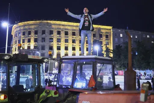 In Belgrade, tensions soared after Vucic's supporters, including former paramilitary fighters, set up a camp in a park outside the presidency building. Tractors were parked around the camp on Friday.