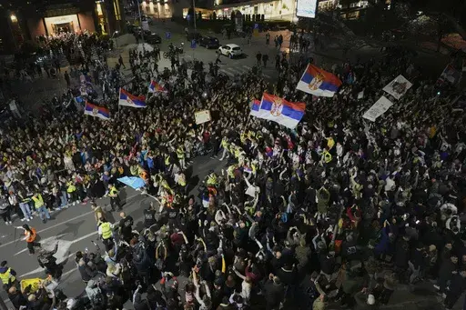 BELGRADE, Serbia (AP) — Tens of thousands of people swarmed the streets in Serbia's capital Belgrade on Friday, staging a joyful prelude to a major anti-government rally on the weekend and dealing a blow to populist President Aleksandar Vucic.