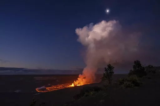 The U.S. Geological Survey’s Hawaiian Volcano Observatory on Thursday lowered Kilauea’s alert level from warning to watch because the rate of lava input declined, and no infrastructure is threatened. The eruption activity is confined to the closed area of Hawaii Volcanoes National Park.