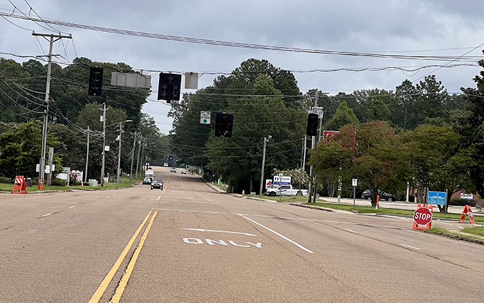 For several weeks, temporary stop signs have been in place (when drivers have not knocked them down) at the traffic light at North State Street and Tougaloo Village Road to alert drivers that a flashing red light means stop. Repairs were made to the traffic light on July 13 and the temporary stop signs removed, but the light was flashing just a few days later.