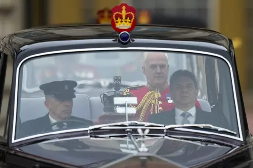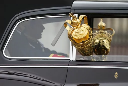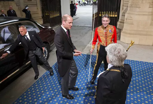 Prince Charles travelled by car, rather than carriage, and did not wear the crown, which got its own cushioned seat. Charles was accompanied by his wife Camilla and his son Prince William, who is second in line to the throne.