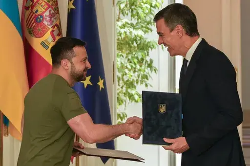 Zelenskyy and Spanish Prime Minister Pedro Sánchez signed a bilateral security agreement that allocates 1 billion euros ($1.1 billion) of military aid to Ukraine in 2024, and 5 billion euros ($5.4 billion) by 2027. More Leopard tanks and artillery ammunition also feature in the package.