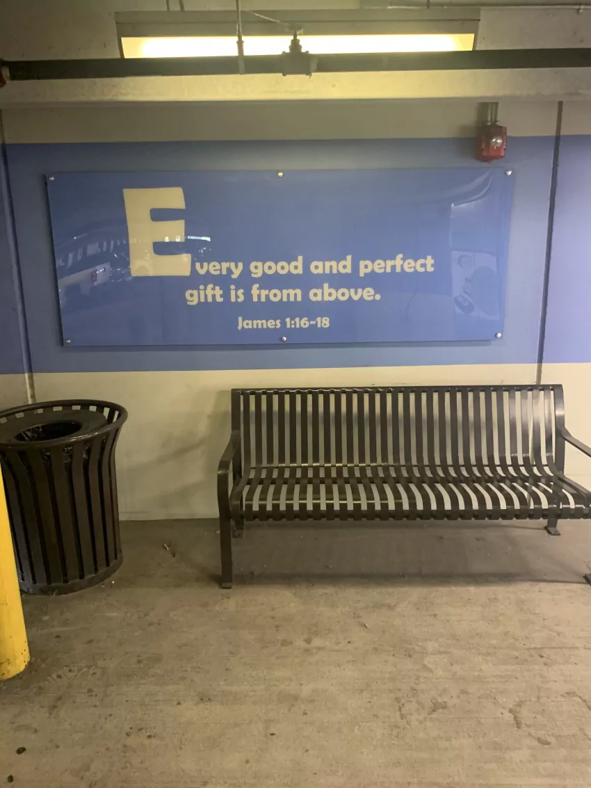 Love the Biblical verses inside the parking garage at the Belhaven building in Jackson.