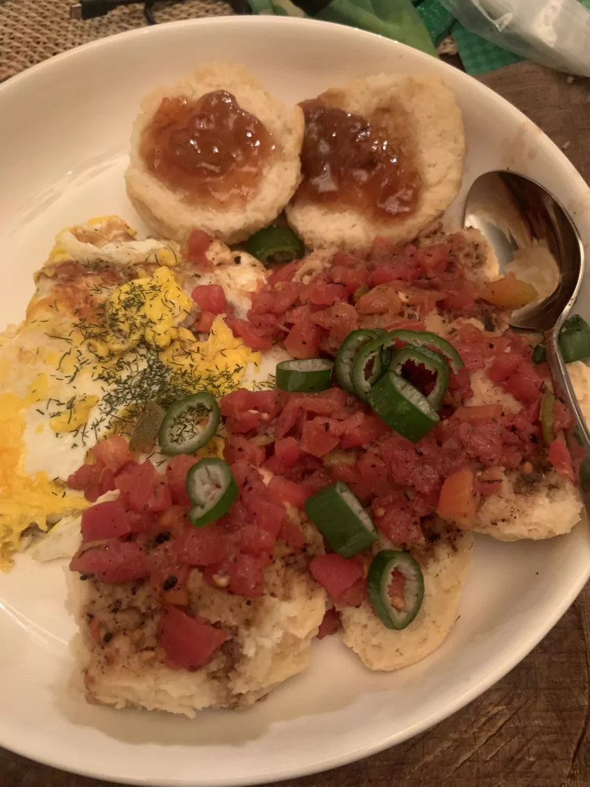 Biscuits with chunky tomato gravy