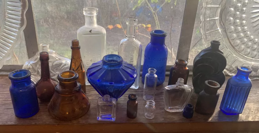 I collect small vintage bottles, which I use as vases in my kitchen window. Now, I just need to purchase a few flowers. What do you think?