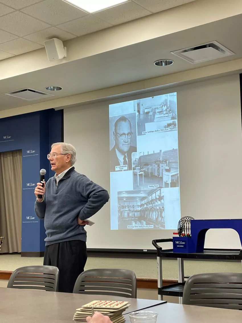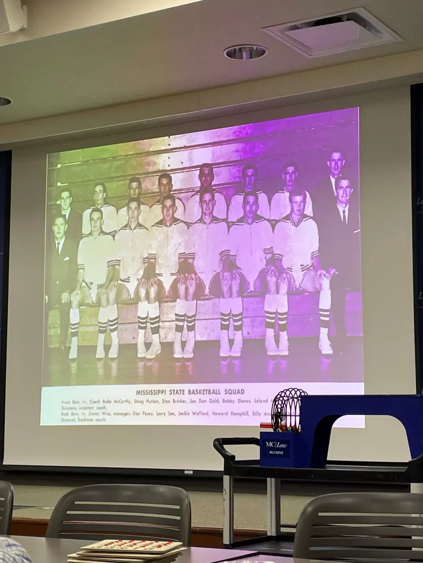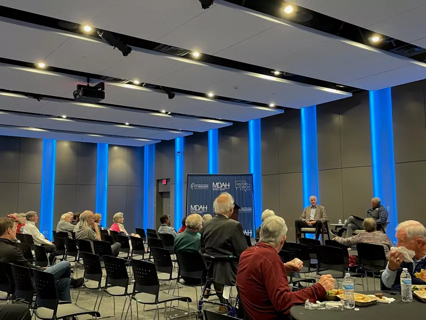 Today's History is Lunch was a discussion between Rick Cleveland and Bailey Howell entitled "12 Years in the NBA." Bailey Howell is a Naismith Memorial Basketball Hall of Fame member and 12 year NBA veteran. He played basketball at Mississippi State and led the team to a 64-14 record during his three years as a starter. His career averages of 27.1 points and 17 rebounds are still school records.