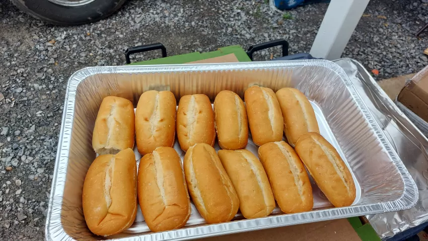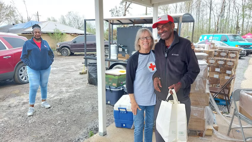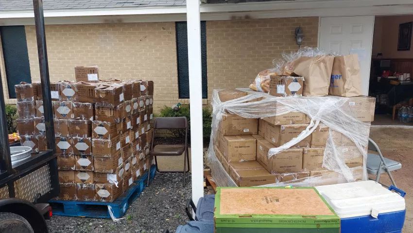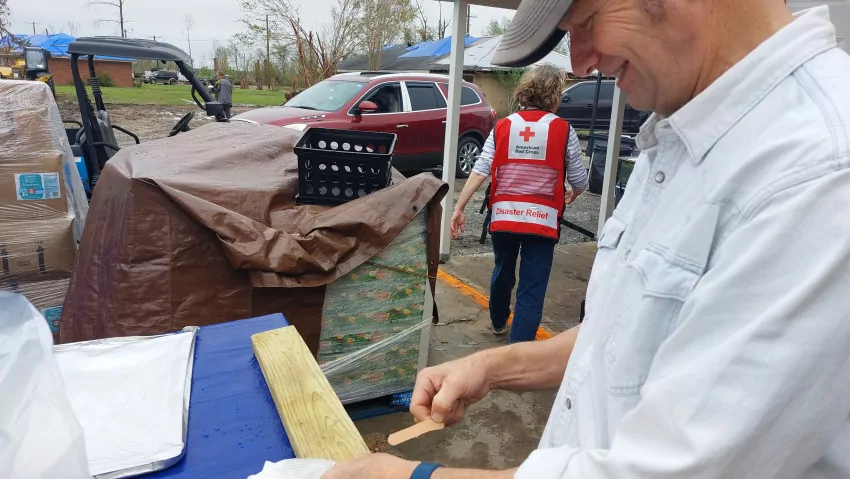 Local residents came by throughout the day to pick up food at the First Baptist Church. Red Cross volunteers told us exactly how many meals to make. Different volunteers are assigned different days.