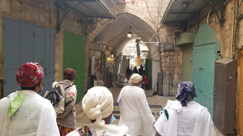 Walking through the streets of Jerusalem Old City to see the Wailing Wall.