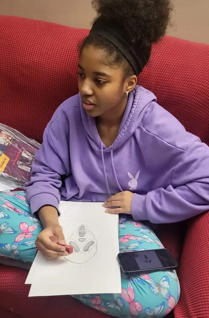 Diamond been doing community service for the last few months. She has been working with Ms. Tanya the last few weeks. Ms.Tanya loves this girl, she told me I gotta share her lol. Found out their birthday is literally a day apart, both are Pisces. Everywhere Diamond goes somebody gets attached to her even though she's so reserved and quiet. It's something about her that ppl love. Diamond did a rubiks cube last week in seconds and they were amazed. I told her yeah Diamond loves Rubick cubes and guitars. She told me she has a guitar at home she's been waiting to gift to someone. She brought it and gave it to Diamond this morning. This is literally her 4th guitar 🎸 and she's currently playing it now. Another one to add to the collection. Oan: She's been learning a new song by the one and only Tupac ❤️