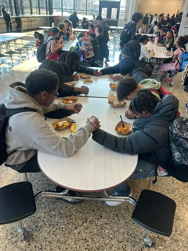So We’re At Lunch And We Look Over And See A Group Of Young Men Group Praying Before Eating Their Food! Threw Me Off Because This My First Time Ever Seeing This Working In The School System But Loved To See It! 🙏🏾🙌🏾