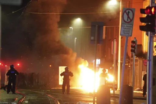 A number of police vehicles and a tram were damaged during the disorder, while a bus and car were also set on fire on the city’s O’Connell Bridge.